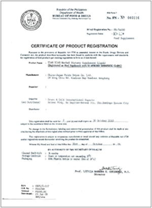 | フィリピン | フィリピン政府から認可を受けたサプリメント。 |