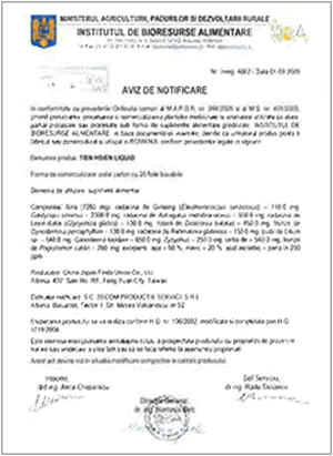 | ルーマニア | ルーマニア政府から認可を受けたサプリメント。 |