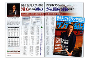 「サンデー毎日」に、国立台湾大学付属医学院での『漢方による初のがん臨床試験』の報告記事が掲載されました。