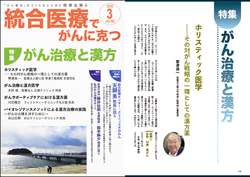 がん情報月刊誌『統合医療でがんに克つ』で、新刊書籍『抗がん漢方―医師から見放された末期ステージ4 安定から好転、完治へ漢方が救う!』が紹介されました。書籍は世界のがん治療情報から日本のがん治療の現状と問題点、最新の漢方がん治療情報などが報告されています。今号では『「漢方にはエビデンスがない」を覆した漢方』について検証されています。